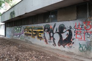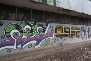 A large 2013 composition by Nes, Moresko, and Deroks comprises three connected graffiti on a grey background, executed in colorful wildstyle with prominent arrow elements. The work is visible on Google Maps, documented in a 2013 photo roundup on the FortyFivers blog, and a detail photo appears on the MORESKO profile on Streetpins.