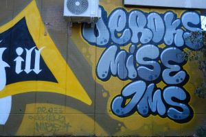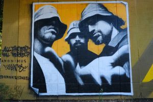One of the oldest surviving graffiti works in the area, this 1996 piece in a blackletter lettering style was painted by Nes, Mise, Deroks, Jamaz and Dr. Qee and includes an inscription and the logo of the group “Cypress Hill”. The work was restored in 2025 and is documented by Fortyfivers45 and can also be seen on Google Maps.