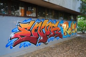 Enor and Nes collaborated on this 2024 piece that pairs a painted character with bold, stylized lettering. The composition features the name “Enor” prominently and a secondary inscription reading “Raito”. The combination of character work and lettering creates a cohesive, graphic presentation.
