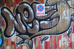 A cartoon-style hammerhead shark painted across a corrugated metal fence forms this 2014 piece by Nes and Hope. The character-driven design relies on bold outlines and flattened color to read well on the metal surface. The work was shared by before sunrise and also appears on Fortyfivers45 Instagram.