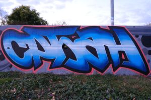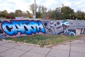 A photorealistic mural featuring a space-themed character composes this 2025 piece most likely by Srđan Dimić (Demon). The painting includes the inscription “срђан” accompanied by a detailed, cosmic character. The work is documented in a Facebook reel.
