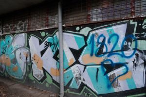 Painted by Nes and possibly another collaborator, this 2013 piece is executed in wildstyle lettering with dense, interlocking forms that make the text difficult to read. The work is best viewed on Google Maps where closer photographic detail is available.