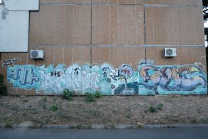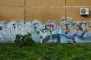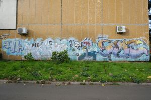 Dated to 2002, this very early graffiti attributed to Dulait centers on a cartoon-style bird character that occupies the composition’s focal point. The surrounding elements may have been added in stages and possibly by multiple authors, so overall authorship is not entirely certain. The work is documented on Fortyfivers45 and is also visible on Google Maps.