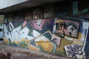 A photorealistic 2012 piece by Hope presents the painted word “hope” together with a small character whose eyes and mouth are clearly visible. The graffiti is visible on Google Maps and is documented in online posts such as Fortyfivers45 on Instagram and Walls of Belgrade.