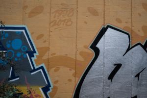 Two inscriptions painted on a yellow background form this 2018 piece by Nes and Hope. The composition is spare — two separate texts on a uniform yellow field; the wall also carries an older inscription reading “1998”, which has prompted suggestions that the work may have been restored, although that is not verified. The graffiti is documented in a blog post by FortyFivers and was shared by Fortyfivers45 on Instagram.